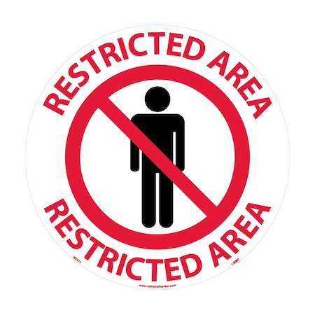 NMC WFS11 Walk On Floor Sign, Legend "RESTRICTED AREA" with Graphic, 17" Diameter, Pressure Sensitive Vinyl, Red on White