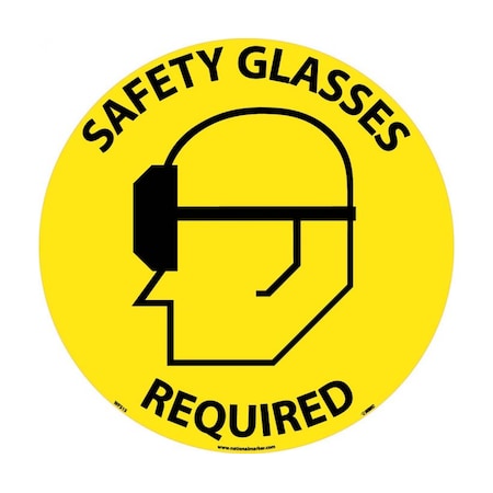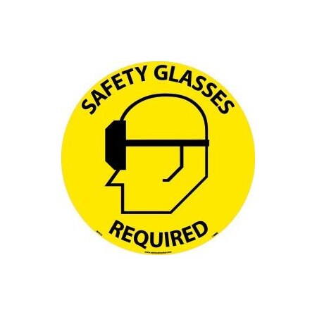 NMC WFS15 Walk On Floor Sign with Graphic, "SAFETY GLASSES REQUIRED", 17" Diameter, Pressure Sensitive Vinyl, Black On Yellow
