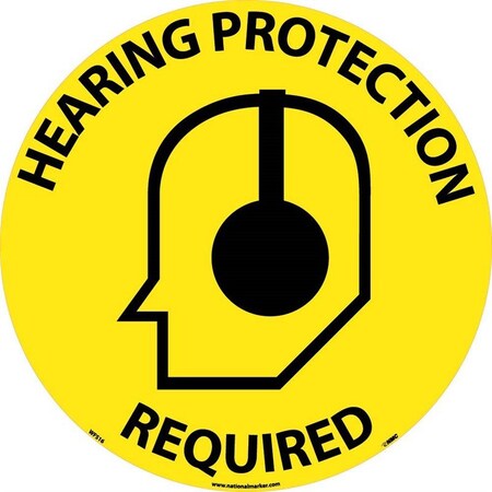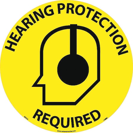 - Product Specification: the circular hearing protection required sign is 17 in. in diameter and .004 in. thick. The sign has text and graphic in Black on a Yellow base