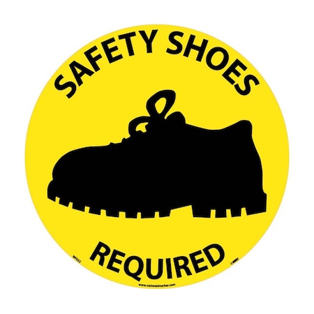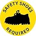 NMC WFS32 SAFETY SHOES REQUIRED Sign – 17 in. Circular Adhesive Backed Vinyl Walk on Floor Personal Protection Sign with Graphic, Black Text on Yellow Base