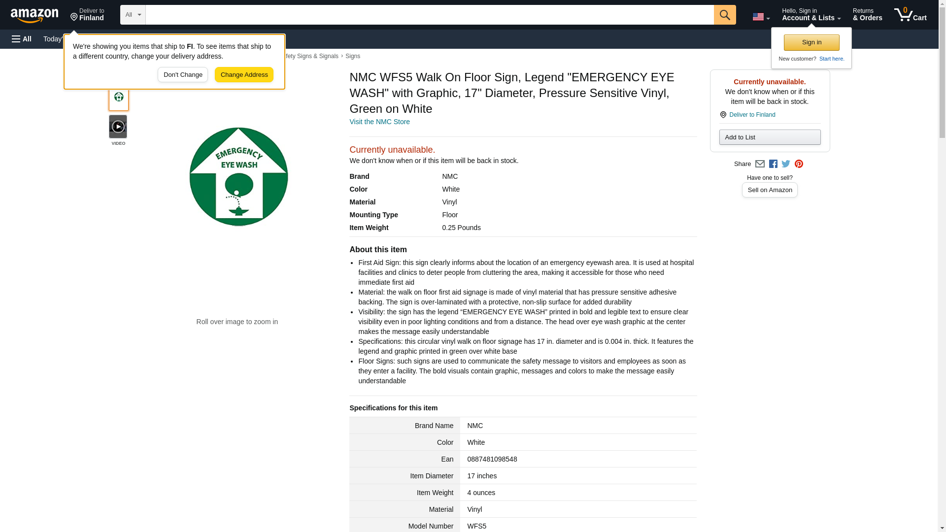 NMC - National Marker Company Floor Sign, Walk On, Emergency Eye Wash, 17" Dia
