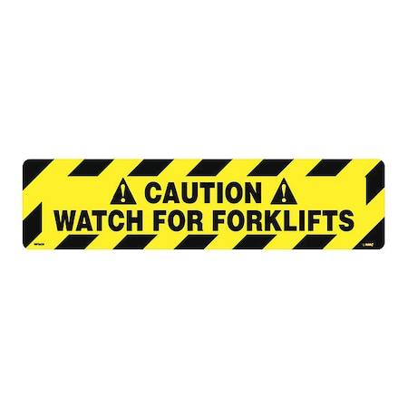 NMC WFS629 Walk On Floor Sign, Legend "!CAUTION! - WATCH FOR FORKLIFTS", 24" Length x 6" Height, Pressure Sensitive Vinyl, Black on Yellow