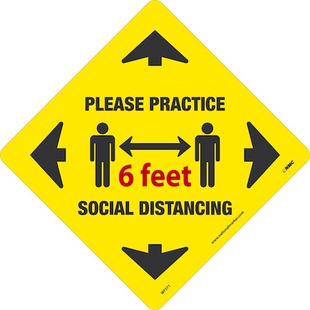 NMC WFS71 Please Practice Social Distancing, Floor Sign, Walk-On Non-Slip Pressure Sensitive Vinyl, 12x12