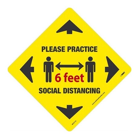 NMC WFS71A Please Practice Social Distancing, Floor Sign, Temp-Step Non-Slip Removable Pressure Sensitive Vinyl, 12x12