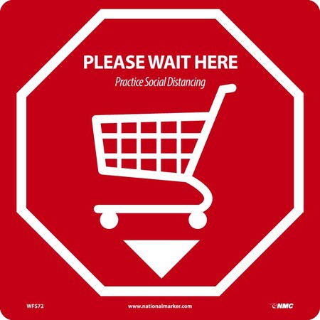 NMC WFS72 Please Wait Here (Shopping Cart), Social Distancing Floor Sign, Walk-On Non-Slip Pressure Sensitive Vinyl, 12x12