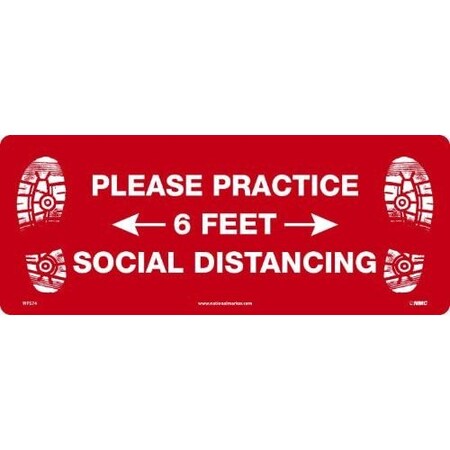 NMC WFS74 Please Practice Social Distancing (Footprints), Floor Sign,Walk-On Non-Slip Pressure Sensitive Vinyl, Multicolor, 8" x 20"