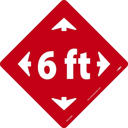 NMC WFS79ARD 6 Ft Arrow Graphic, Red On White, Walk On Floor Sign, 8 X 8 In,Pressure Sensitive Vinyl Removable, Non-Slip , Social Distancing, 8 Inch Height x 8 Inch Width