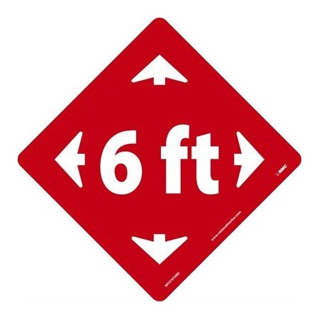 NMC WFS79TXRD 6 Ft Arrow Graphic, Red On White, Walk On Floor Sign, 8 X 8 In, Texwalk Vinyl, Social Distancing