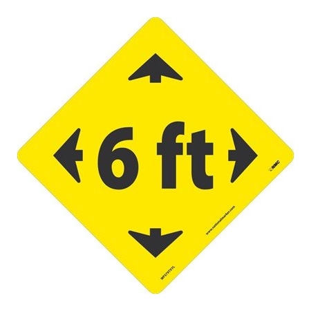 NMC WFS79TXYL 6 Ft Arrow Graphic, Black On Yellow, Walk On Floor Sign, 8 X 8 In, Texwalk Vinyl, Social Distancing