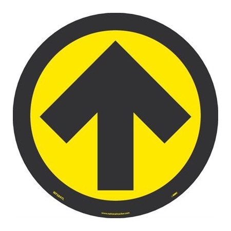 NMC WFS84YL10 Arrow Graphic, Yellow On Black, Walk On Floor Sign, 8 In Diameter,Pressure Sensitive Vinyl Non-Slip, Pack Of 10, Social Distancing