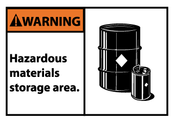 | Feature | Header "WARNING" and legend "HAZARDOUS MATERIALS STORAGE AREA" |