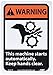 | Feature | Header "WARNING" and legend "THIS MACHINE STARTS AUTOMATICALLY KEEP HANDS CLEAR" |