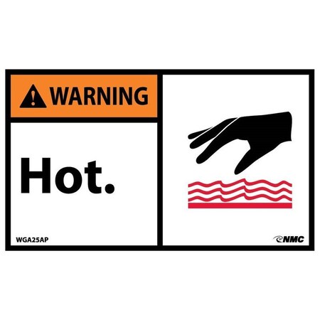 NMC WGA25AP ANSI Sign, Legend "WARNING - HOT" with Graphic, 5" Length x 3" Height, Pressure Sensitive Vinyl, Red/Orange/Black on White (Pack of 5)