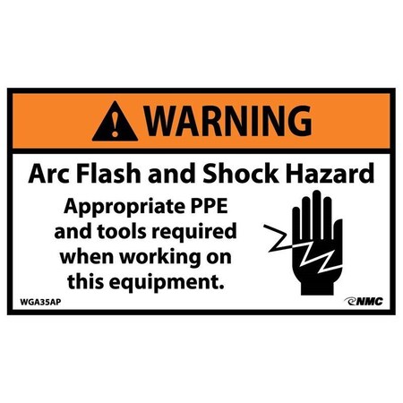 NMC WGA35AP WARNING - Arch Flash and Shock Hazard - Appropriate PPE and tools required when working on this equipment. Label - PS Vinyl Warning Label