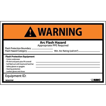 NMC WGA37AP Arc Flash Label w/Legend:Warning - Arc Flash Hazard Appropriate Ppe Required, 25 Packs of 5 pcs