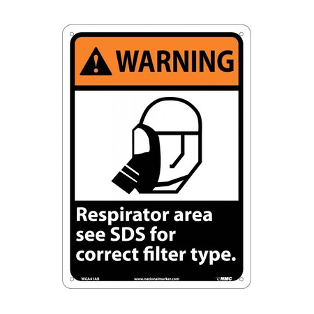 NMC WGA41AB Warning – Respirator Area – See SDS for Correct Filter Type Sign – 10 in. x 14 in. Aluminum Warning Signage with Graphic