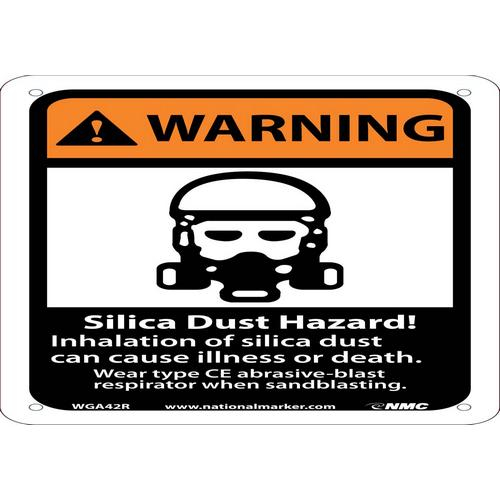NMC WGA42R Warning, Silica Dust Hazard!, 10X7, Rigid Plastic