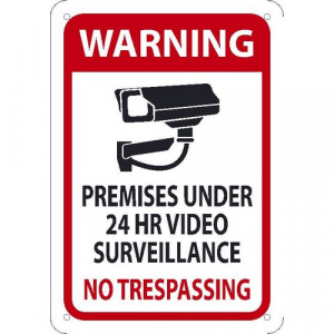 - Visibility: the sign shows the legend “WARNING - PREMISES UNDER 24 HR VIDEO SURVEILLANCE NO TRESPASSING” in contrasting colors and clear, bold letters to ensure easy visibility in most lighting conditions and even from a distance