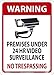 - Visibility: the sign shows the message “WARNING - PREMISES UNDER 24 HR VIDEO SURVEILLANCE NO TRESPASSING” in contrasting colors and clear, bold letters to ensure easy visibility