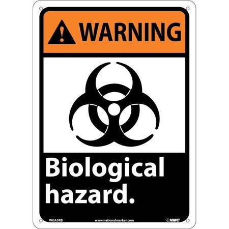 NMC WGA5P ANSI Sign, Legend "WARNING - Biological hazard." with Graphic, 7" Length x 10" Height, Pressure Sensitive Vinyl, Orange/Black on White