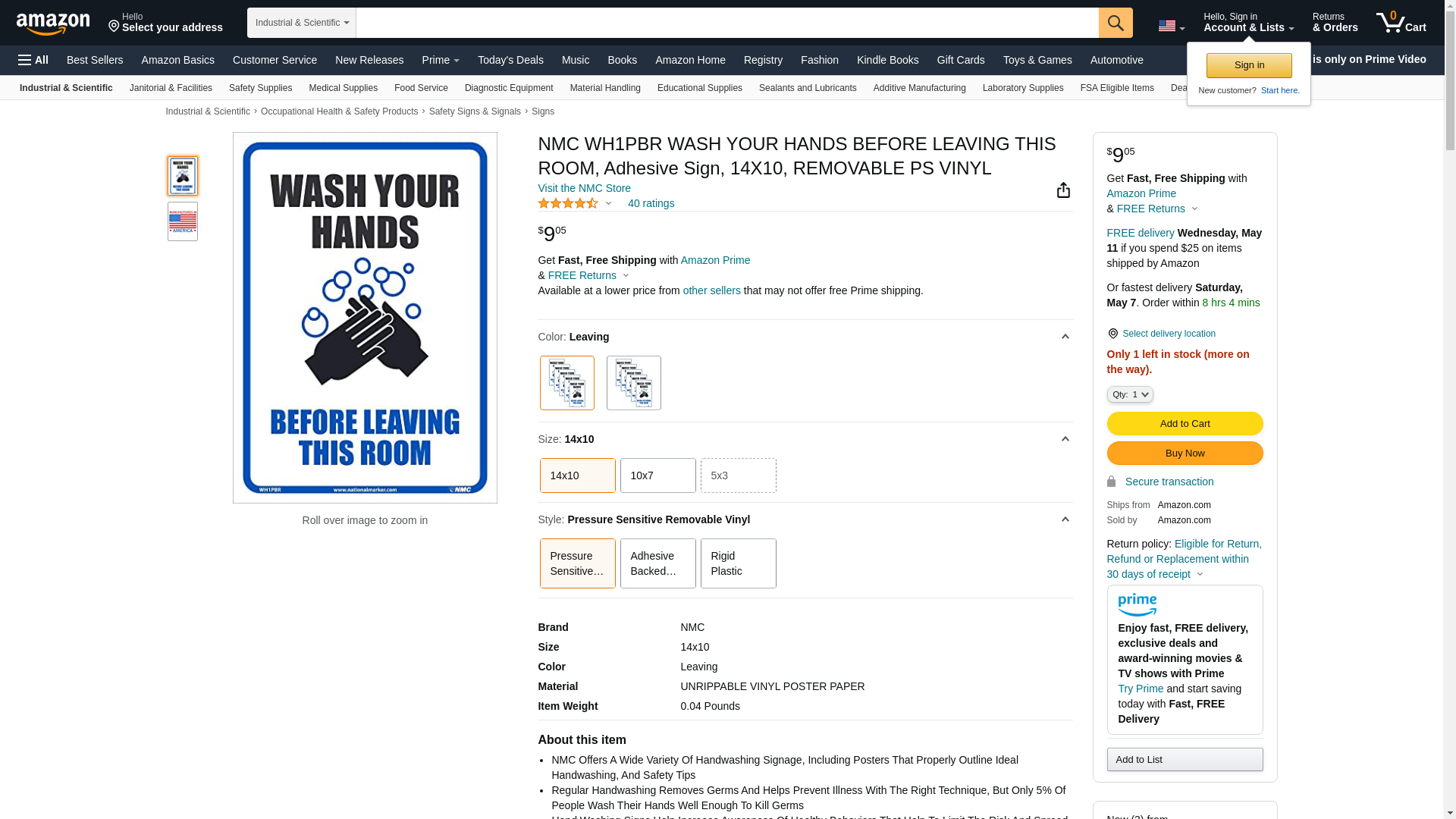 NMC WH1PBR WASH YOUR HANDS BEFORE LEAVING THIS ROOM, Adhesive Sign, 14X10, REMOVABLE PS VINYL