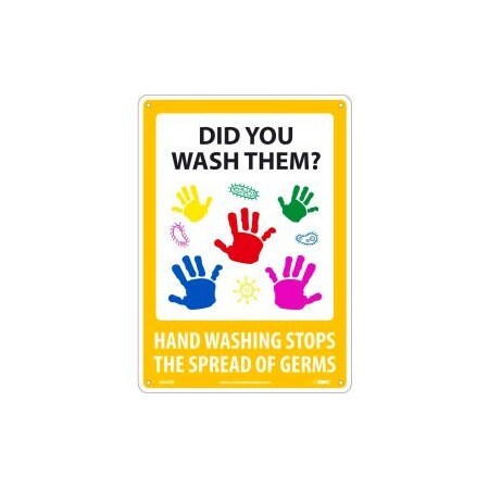National Marker DID You WASH Them? Hand Washing Stops The Spread of Germs, 14 X 10 Rigid Plastic Sign, Novel CORONAVIRUSAwareness & Prevention, Multi-Color