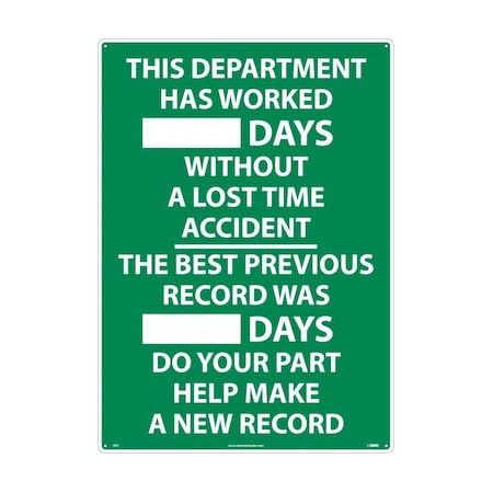 NMC WS1 THIS DEPARTMENT HAS WORKED ___ DAYS WITHOUT A LOST TIME ACCIDENT Scoreboard - 20 in. x 28 in. Aluminum Safety Sign