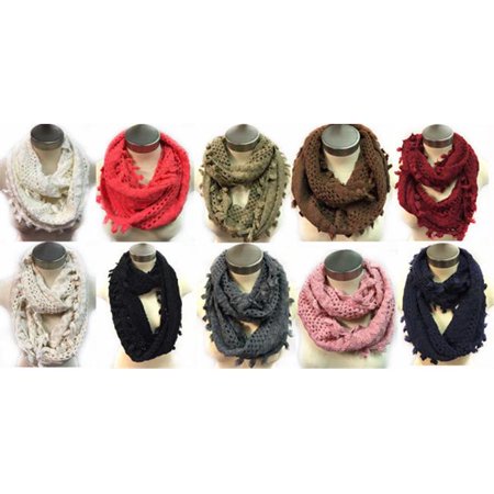 <p>We welcome everyone to the imaginative and original world best apparel. Each and every work and art has been personally conceptualized by us and executed by his most creative design team. We began creating design with traditional cultures. Our affinity with design comes from being the first to use it and understand its powers. Our products are produced with the original idea of making it functional, as lighting, took hold.</p> <p>Winter Knit Infinity Circle Scarves Solid Colors These winter infinity scarves comes assorted colors (see picture) one style and one size in each dozen pack. Colors: white, red, pink, gray, green, brown, etc Size: one size fit most Material: acrylic Quantity: 12 per case</p> <b>Features</b> <ul> <li>Winter Knit Infinity Circle Scarves Solid Colors</li> <li>Case of 12</li> </ul>- SKU: DLR332462