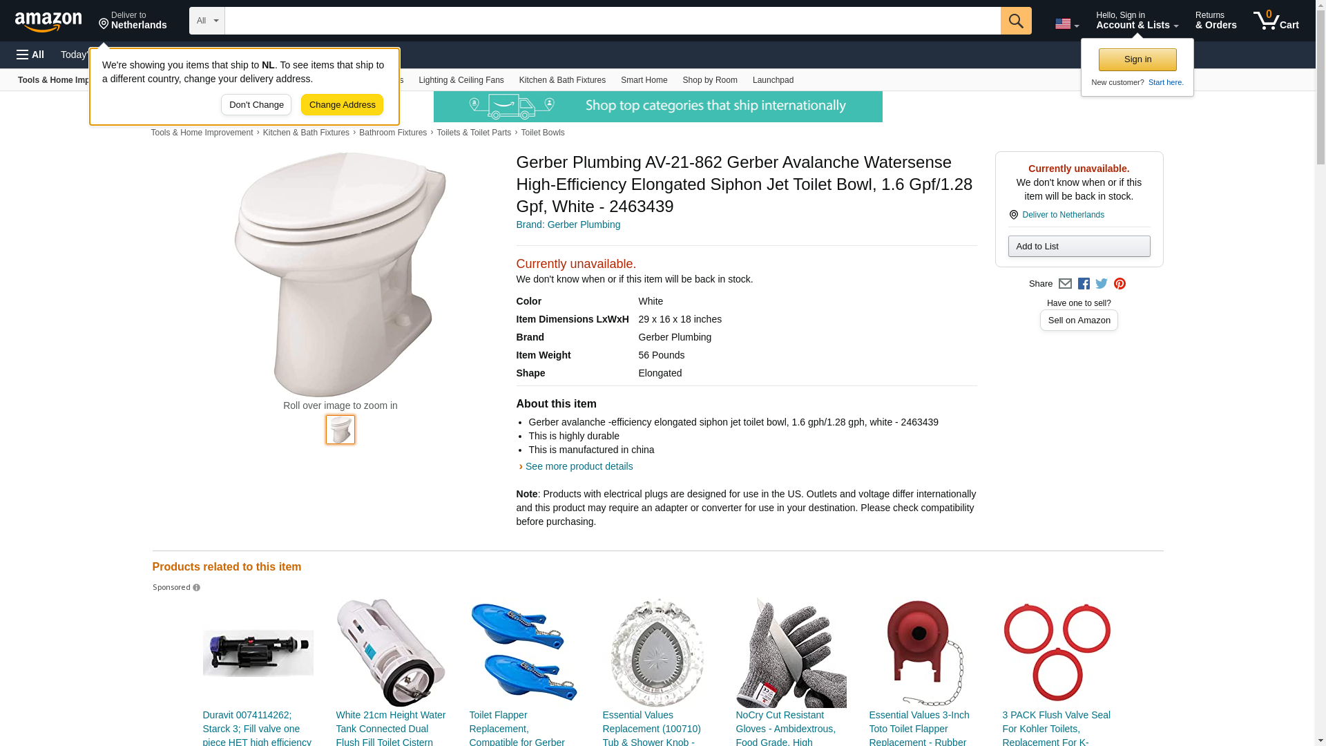 GERBER LEGENDARY KNIVES 2463439 Gerber Plumbing Gerber Avalanche Watersense High-Efficiency Elongated Siphon Jet Toilet Bowl, 1.6 Gpf/1.28 Gpf, White -
