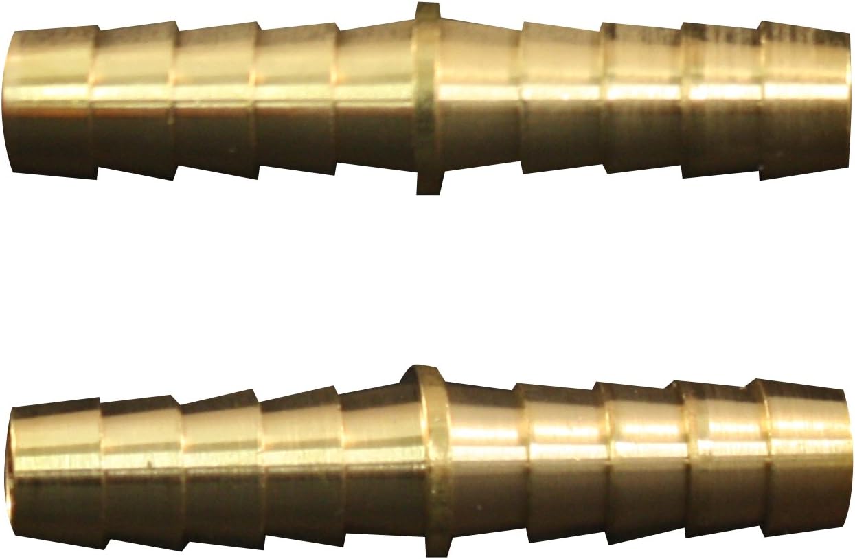 Pack of two brass hose menders for a 3/8" ID hose. Brass hose fittings are used to assemble new hoses or replace old fittings on hoses. A hose clamp may also be used but is not as desirable. For best results and professional finished product the hose end should be secured with a crimped ferrule. Both ends of these hose menders have hose barbs.