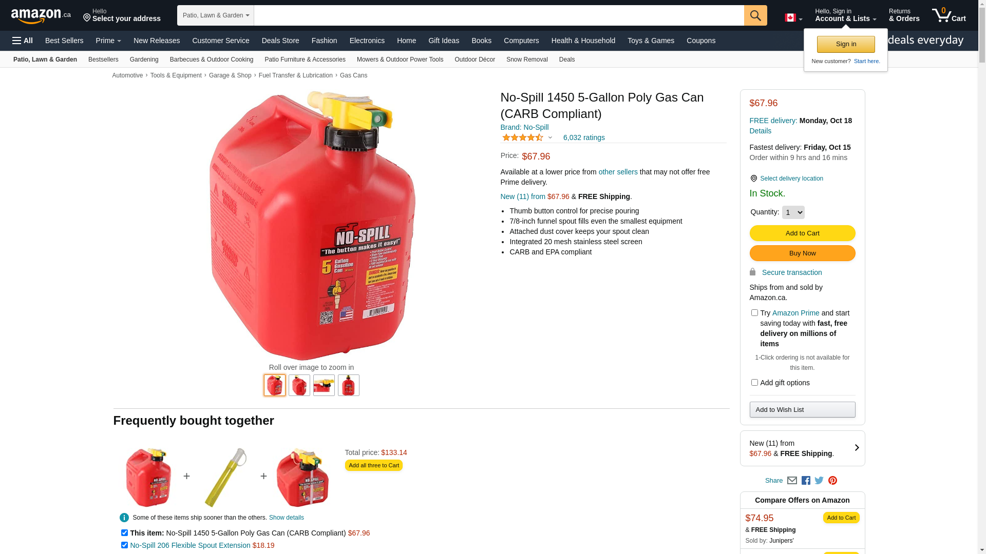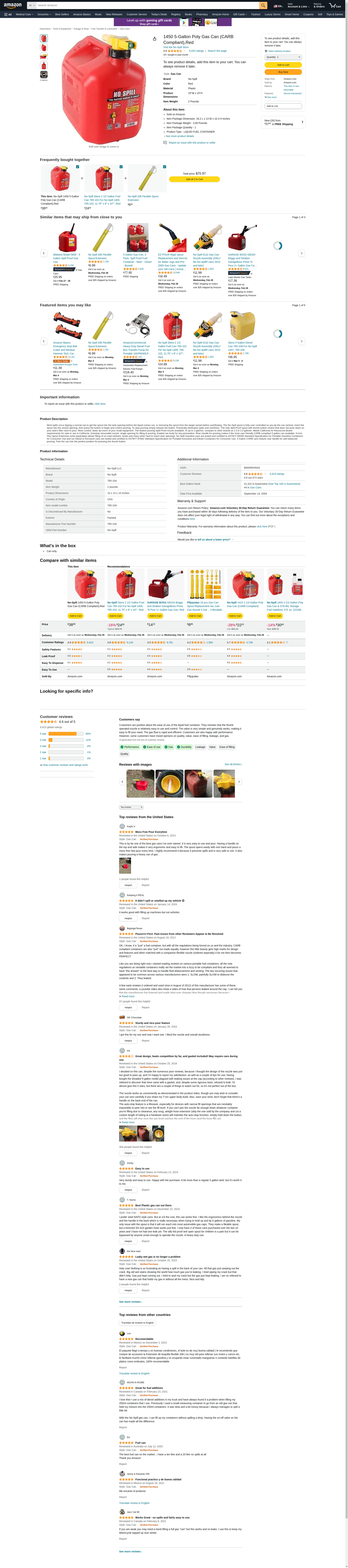 Most spills occur tipping a normal can to get the spout into the tank opening before the liquid comes out, or removing the spout from the target vessel before overflowing. The No-Spill spout is fully user controlled so you tip the can vertical, insert the spout into the vessel opening, then press the button to begin and control pouring. To stop pouring simply release the button. Practically eliminates spills and overflows. The only Spill-Proof spout with thumb button control that does not push down on your tank's filler neck to pour. More control, fewer tip-overs of your small equipment. The fastest pouring Spill-Proof nozzle available. At up to 3 gal/min, compare to other brands at 1.5 to 2.0 gal/min. Meets California Air Resources Board requirements for sale or use in California. Autostop removable nozzle, single opening for filling & pouring, treated can body for low permeation. Rear handle for pouring makes it the most user friendly CARB compliant 5 gallon can available. 6-inch Flex Spout Extension (sold separately) allows filling of on-road vehicles, boats and many other hard to reach tank openings. No-Spill Gasoline cans are tested and certified to ASTM F-85299 Standard Specification for Portable Gasoline Containers for Consumer Use and our Diesel & Kerosene cans are tested and certified to ASTM F-97602 Standard Specification for Portable Kerosene and Diesel Containers for Consumer Use. 5 Gallon CARB cans feature rear handle for well balanced pouring. Puts the can into the perfect position for pressing the thumb button.