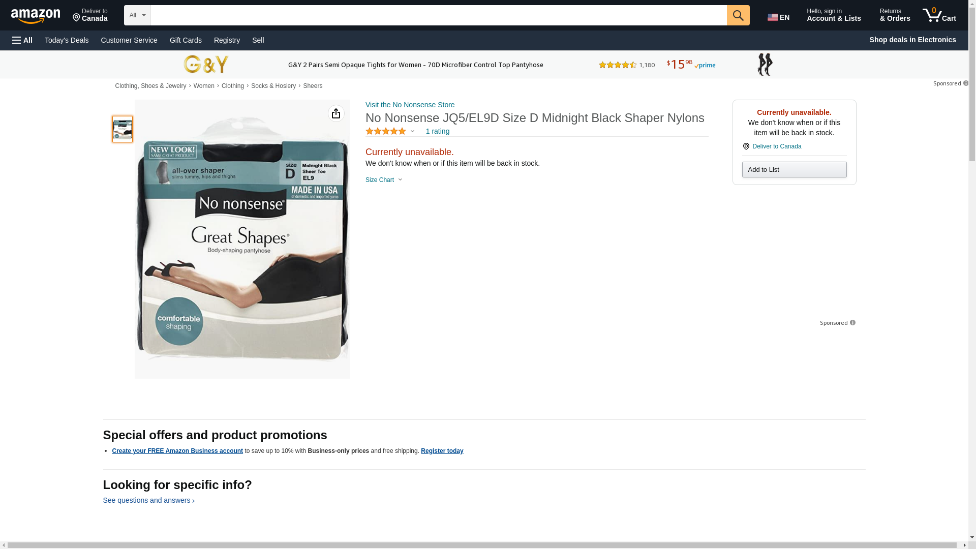 No Nonsense JQ5/EL9D Size D Midnight Black Shaper Nylons