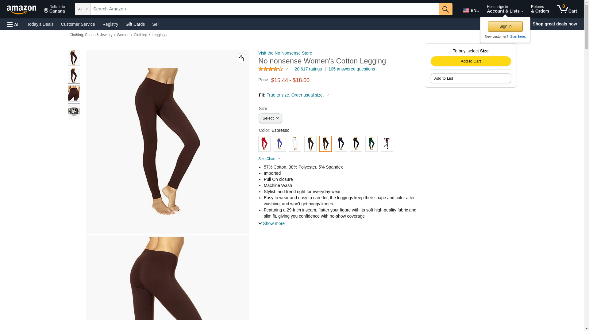 No nonsense Women's Plus Size Cotton Legging, Espresso, Small