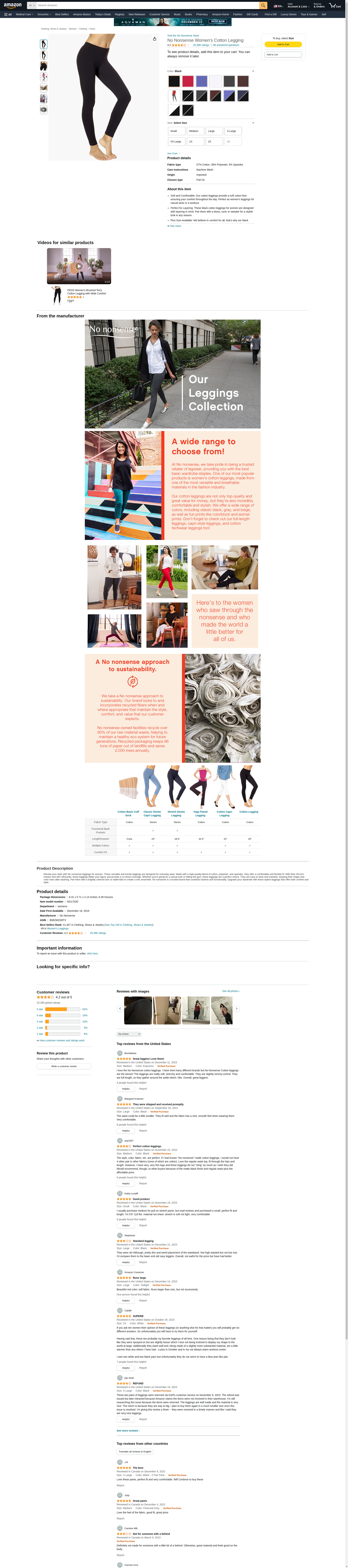 No nonsense womens Cotton leggings pants, Black, XX-Large US