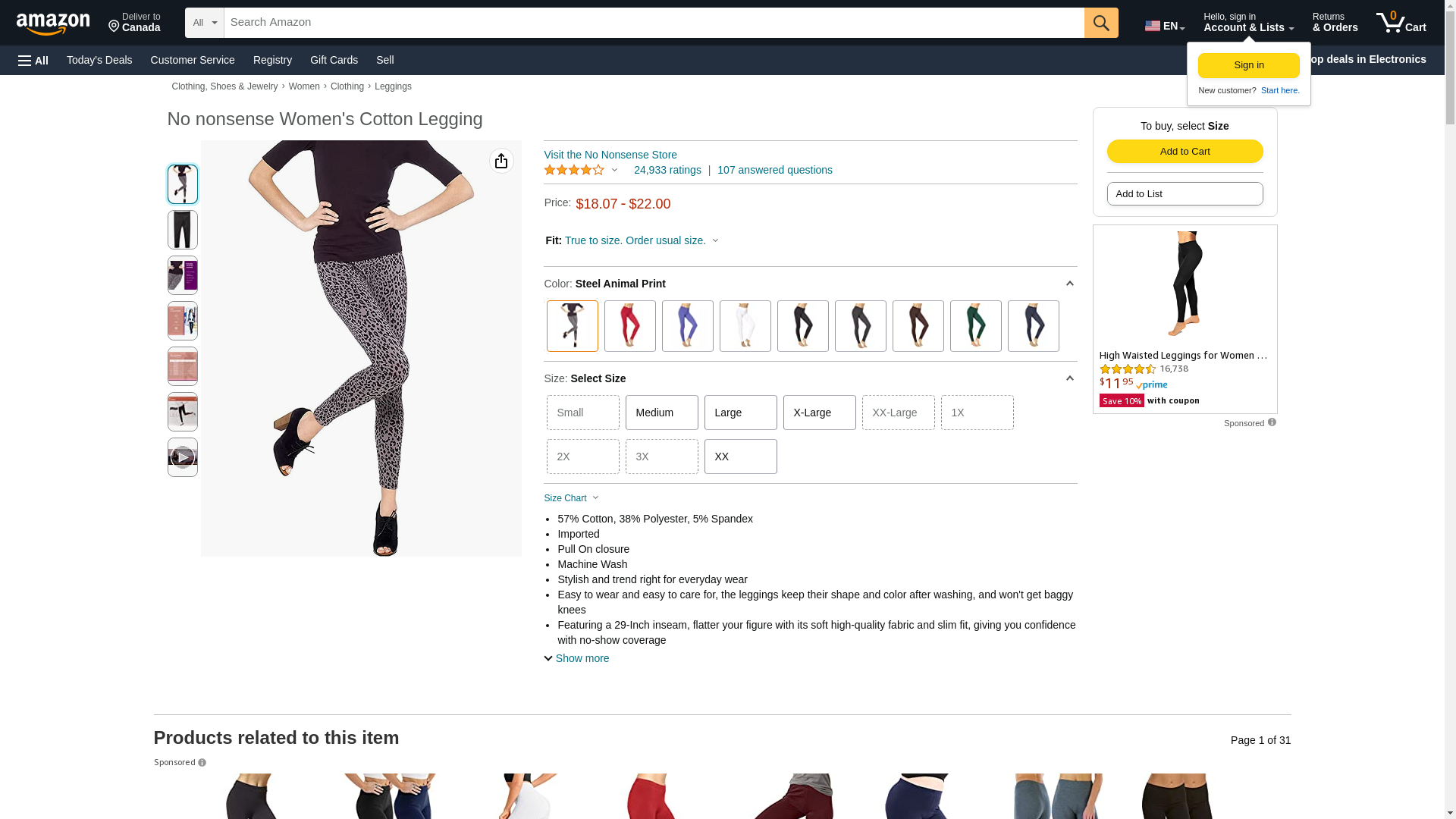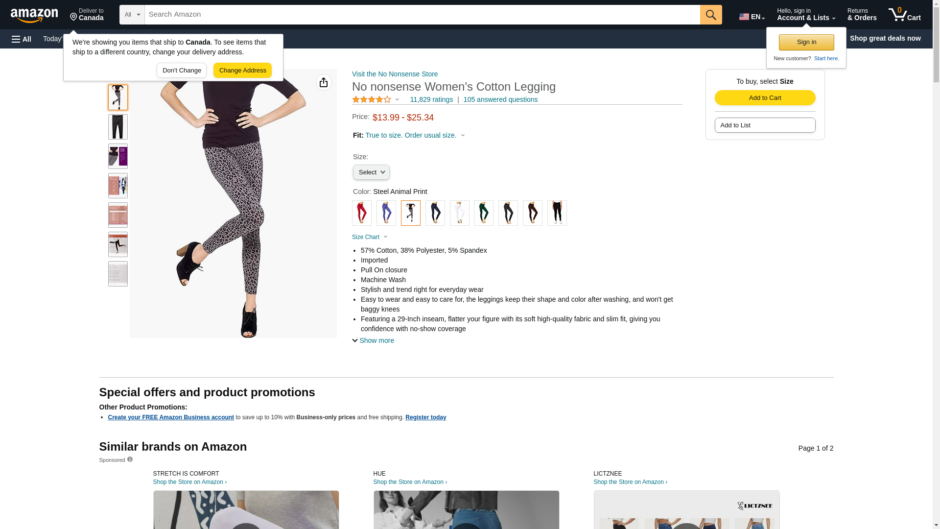 No nonsense Women's Plus Size Leggings-Soft Cotton Feel, Comfortable & Perfect for Layering, Gentle Elastic Waistband, Steel Animal Print, Small
