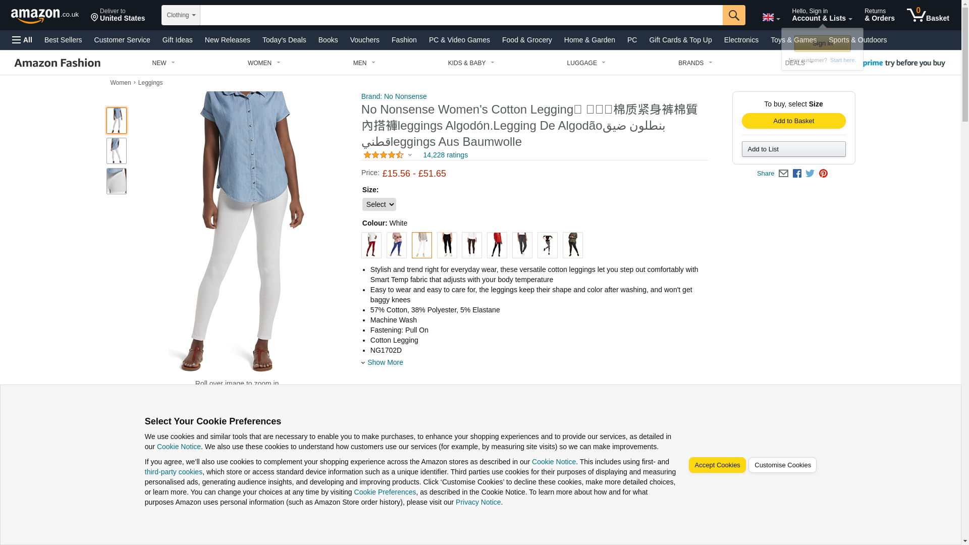No nonsense womens Cotton Leggings, White, Medium US