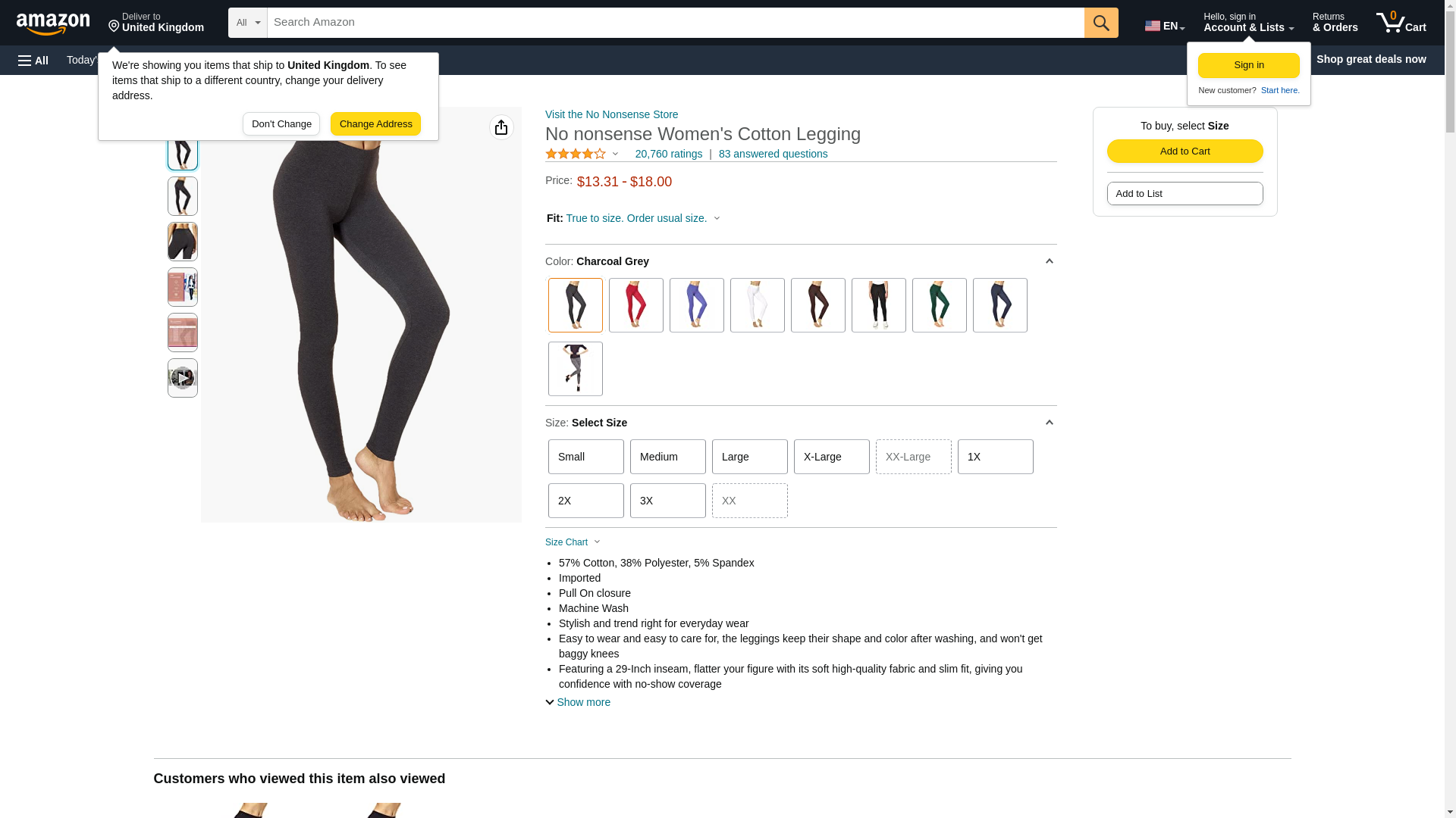 No nonsense Women's Plus Size Cotton Legging, Charcoal Grey, Large