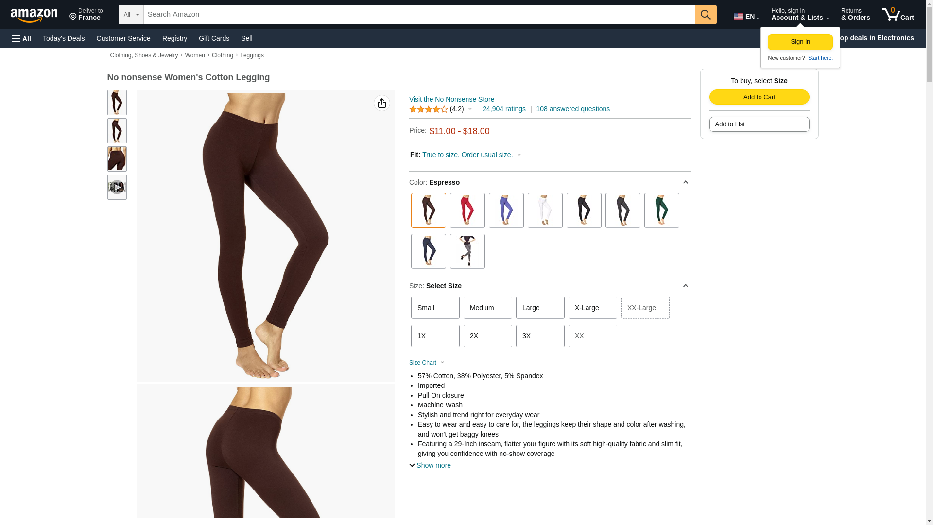 No nonsense Women's Plus Size Cotton Legging, Espresso, Large