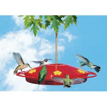 Features a no drip design with a built-in ant moat 16-ounce capacity. Features a full-circle perch and six feeding stations with bright yellow flower. The top removes for easy filling and cleaning. Shatter-proof construction assures years of satisfaction.