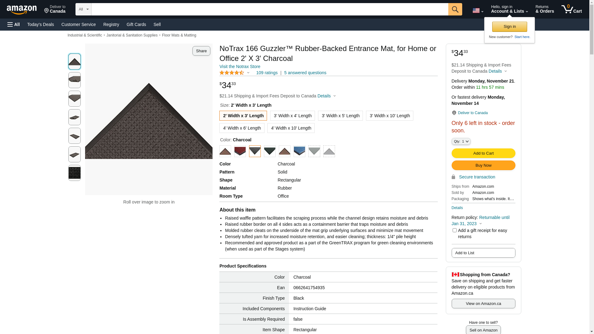 NoTrax 166S0023CH Low Profile Water Trap Door Mat, Mat Guzzler, 166 2X3 Charcoal