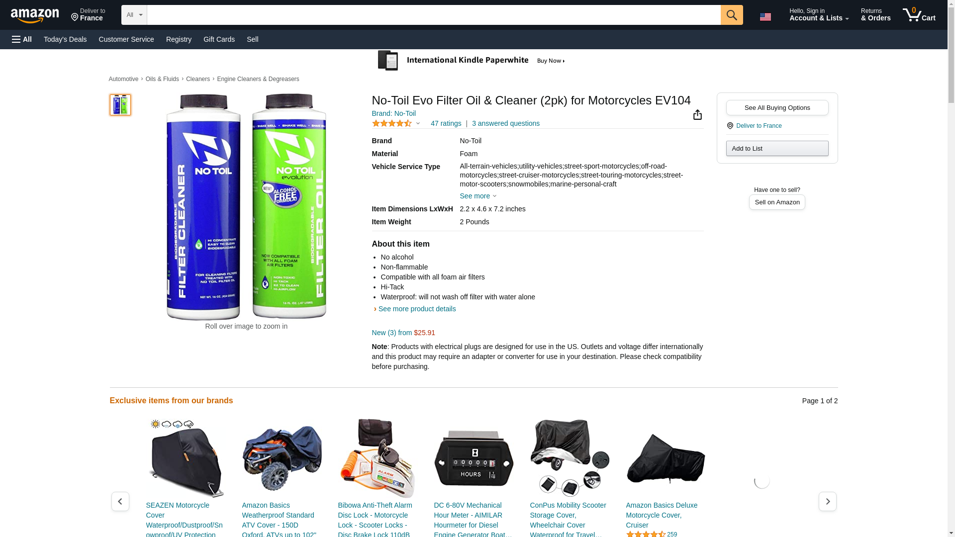 No Toil Air Filter Oil EV104, Case of 12.. Powersport > CHEMICAL > Filter Cleaner & Oil > Air Filter Oil. . . Application: BIO/NON-TOXIC, CAN SHIP AIR FREIGHT.