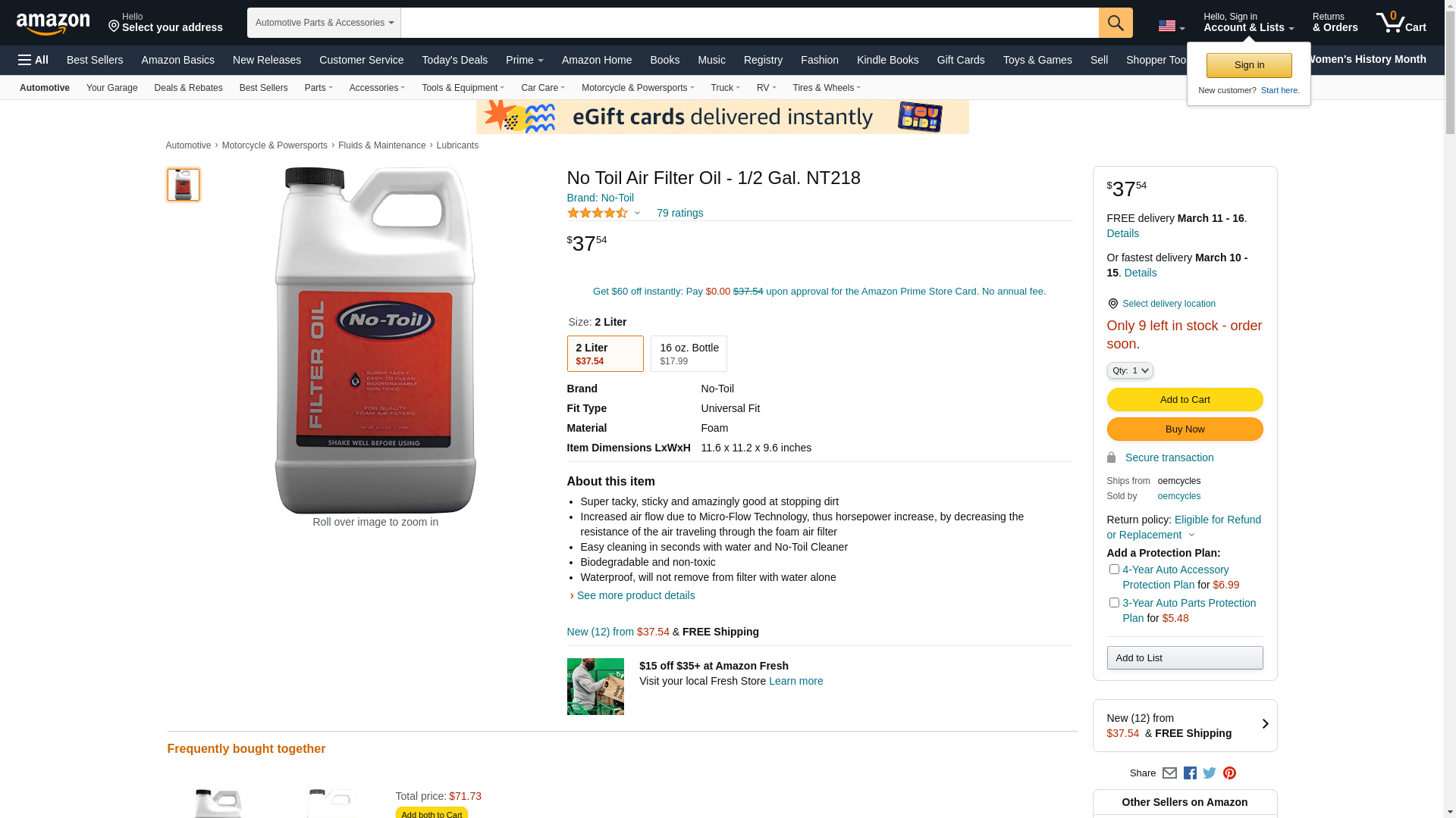 No Toil NT218, Case of 6.. Powersport > CHEMICAL > Filter Cleaner & Oil. . . .