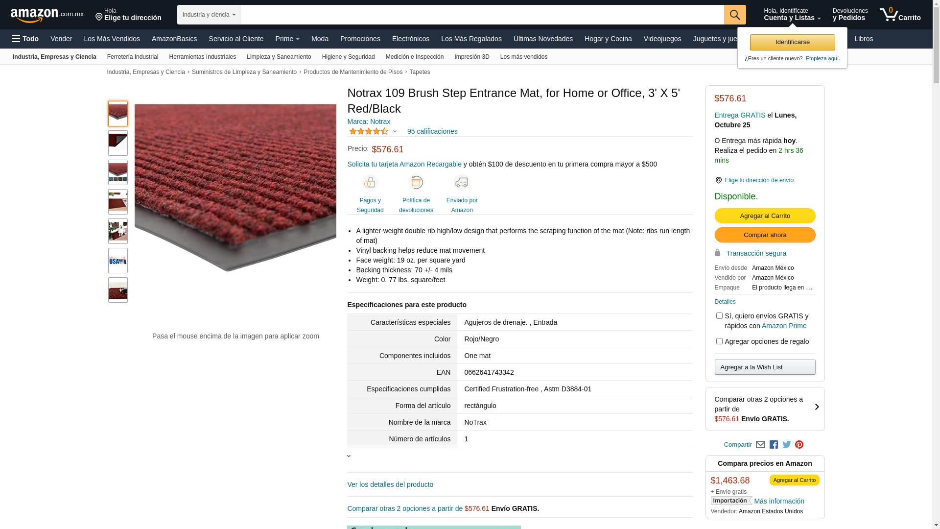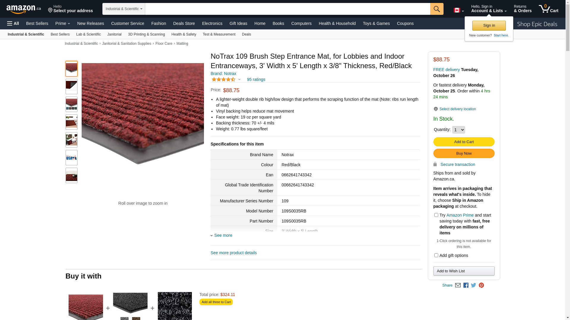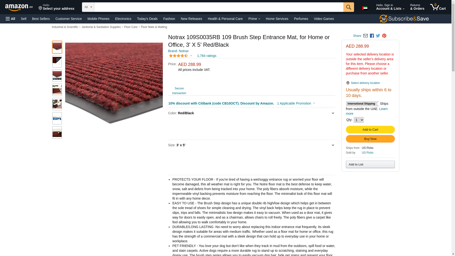 Notrax 109 Brush Step Entrance Mat, for Home or Office, 3' X 5' Red/Black