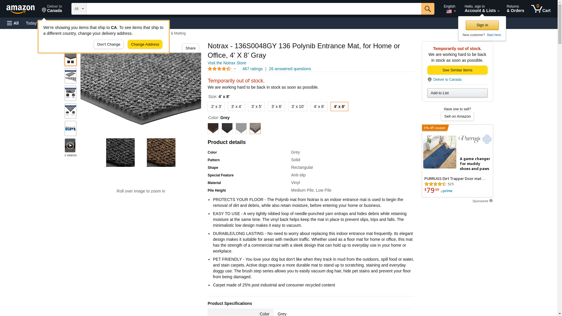 Notrax - 136S0048GY 136 Polynib Entrance Mat, for Home or Office, 4' X 8' Gray