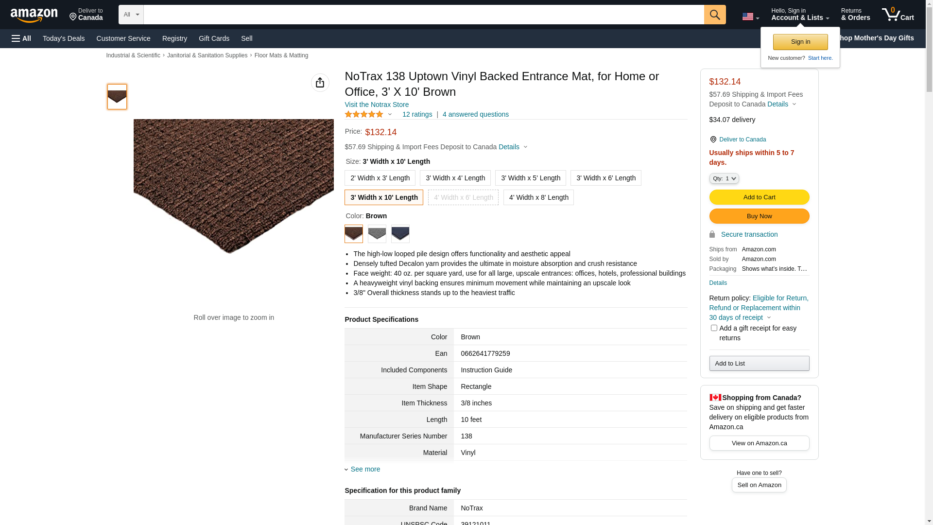 NoTrax 138 Uptown™ Vinyl Backed Entrance Mat, for Home or Office, 3' X 10' Brown