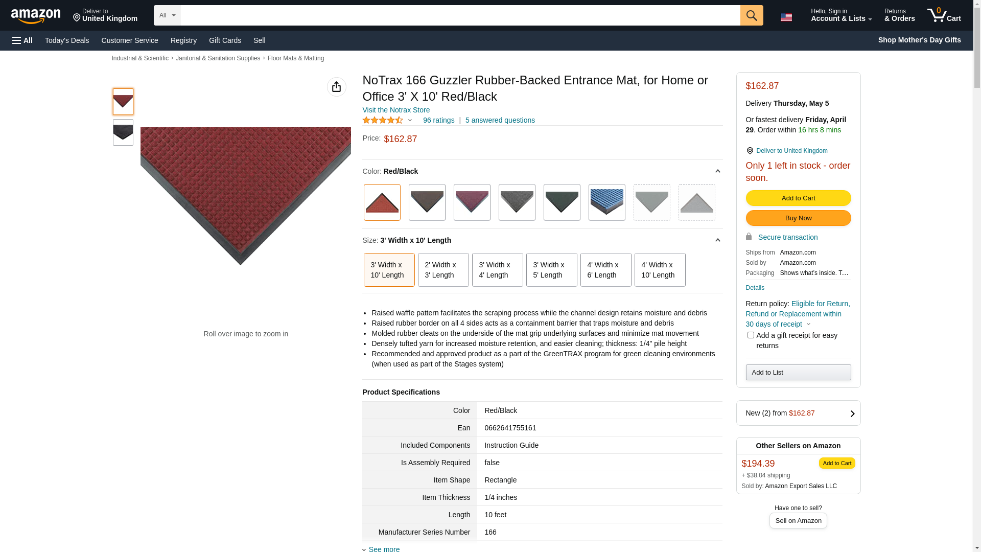 NoTrax 166 Guzzler™ Rubber-Backed Entrance Mat, for Home or Office 3' X 10' Red/Black