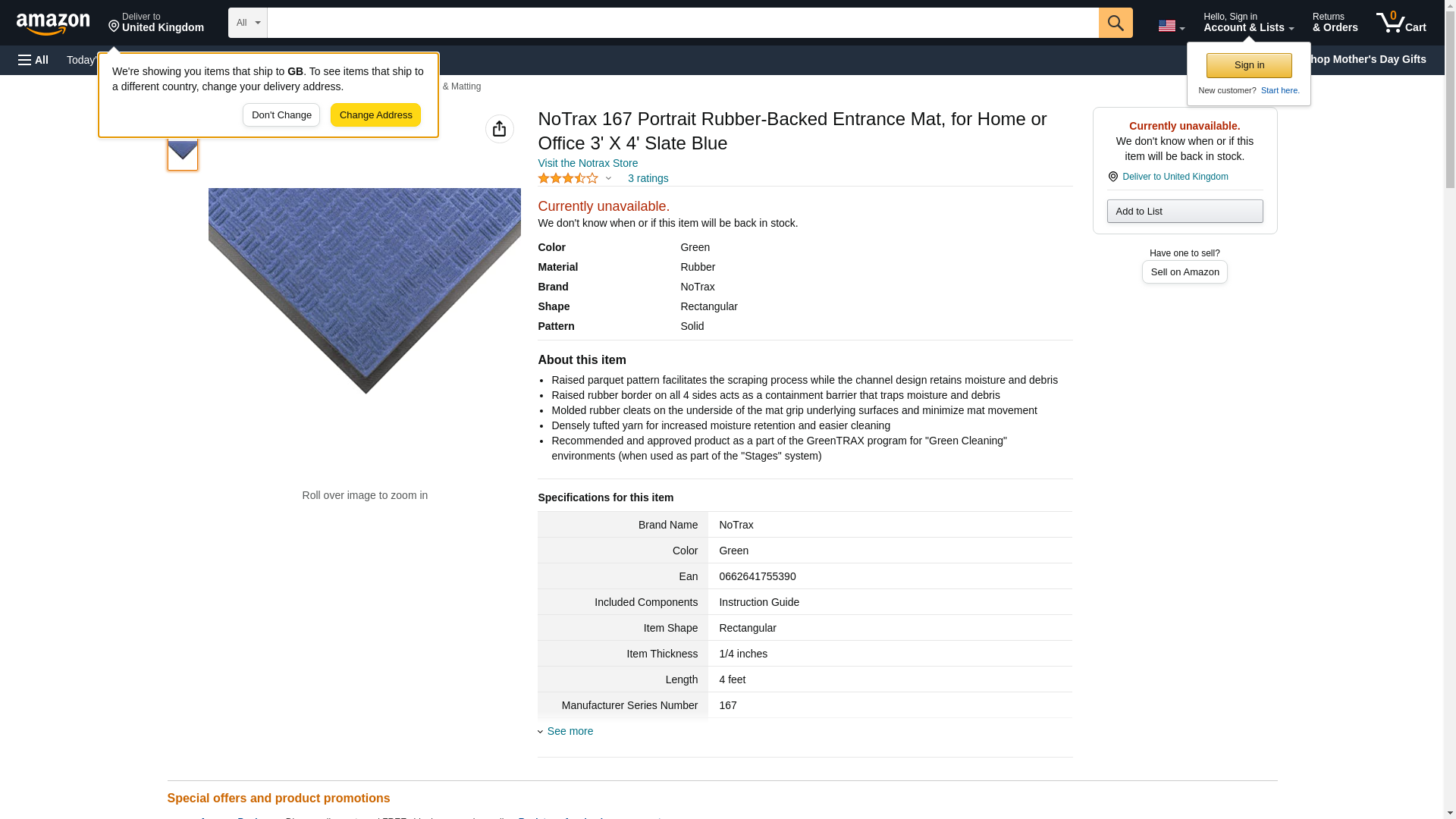NoTrax 167 Portraitâ„¢ Rubber-Backed Entrance Mat, for Home or Office 3' X 4' Slate Blue