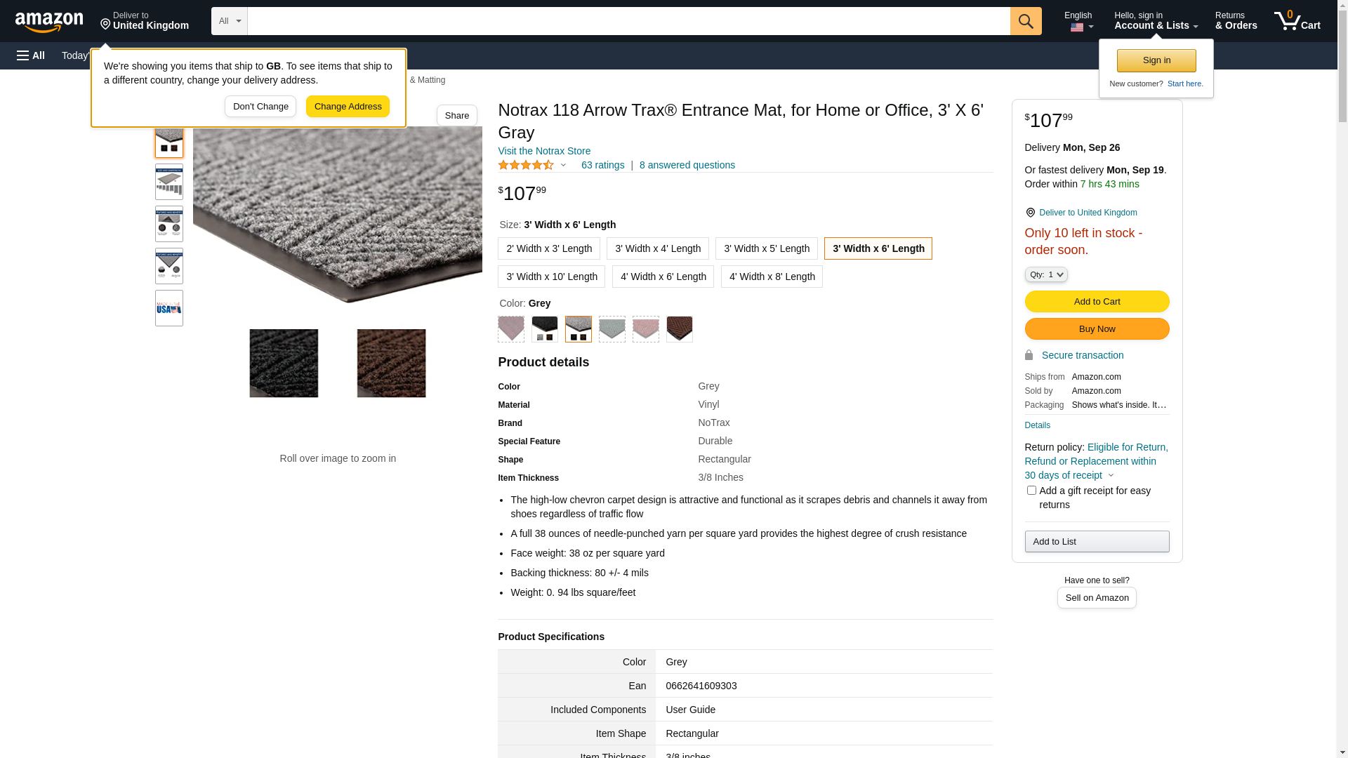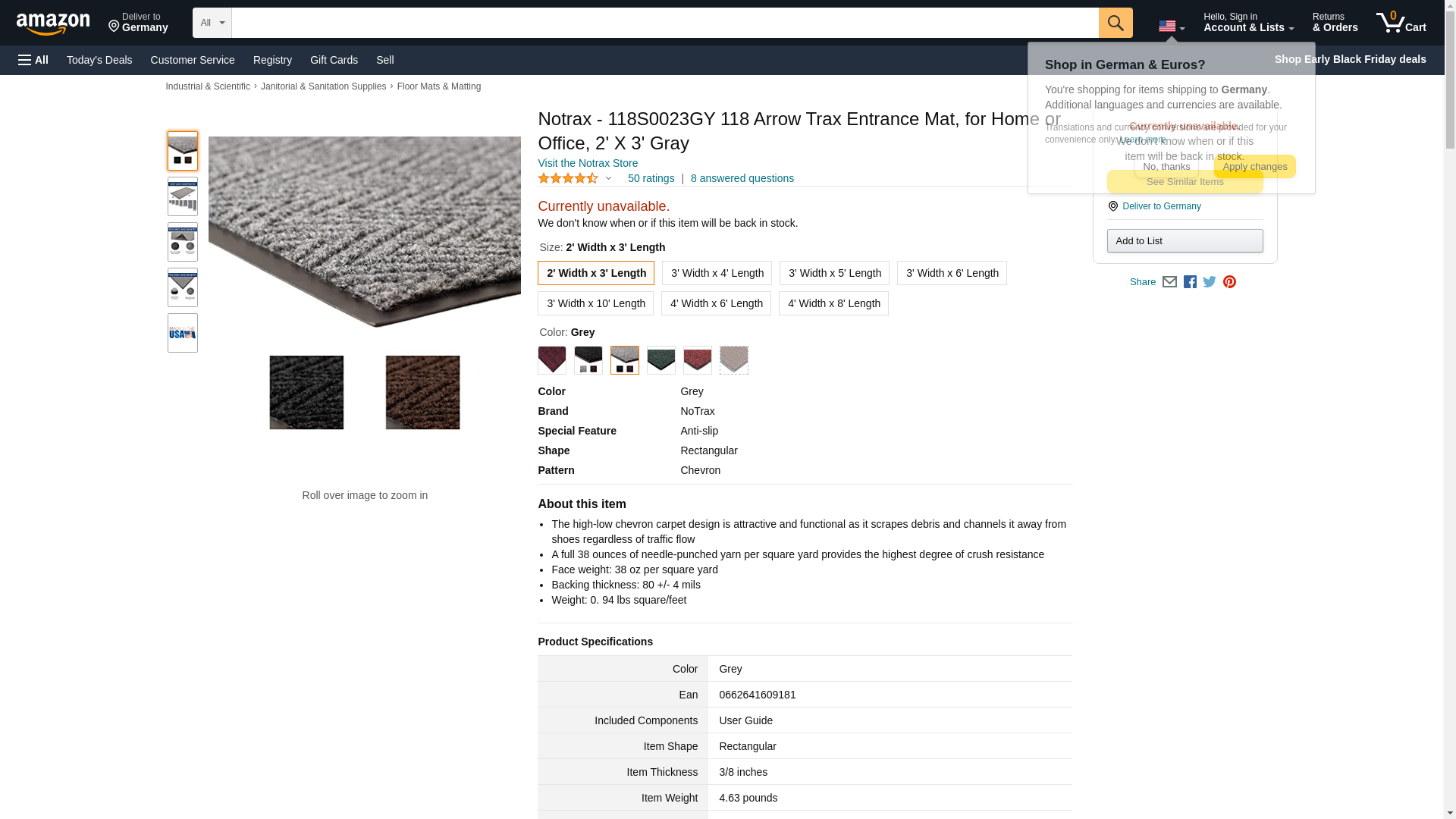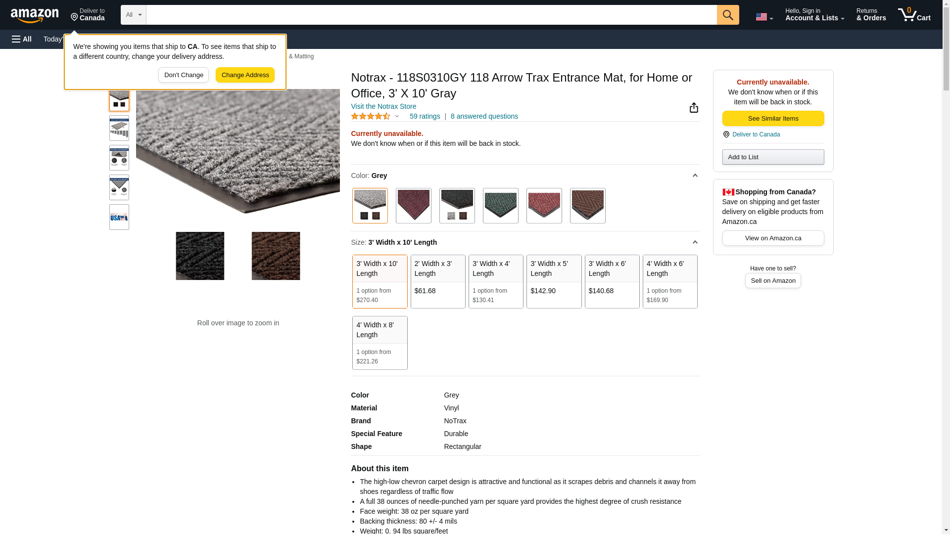 Notrax 118 Arrow Trax® Entrance Mat, for Home or Office, 3' X 6' Gray