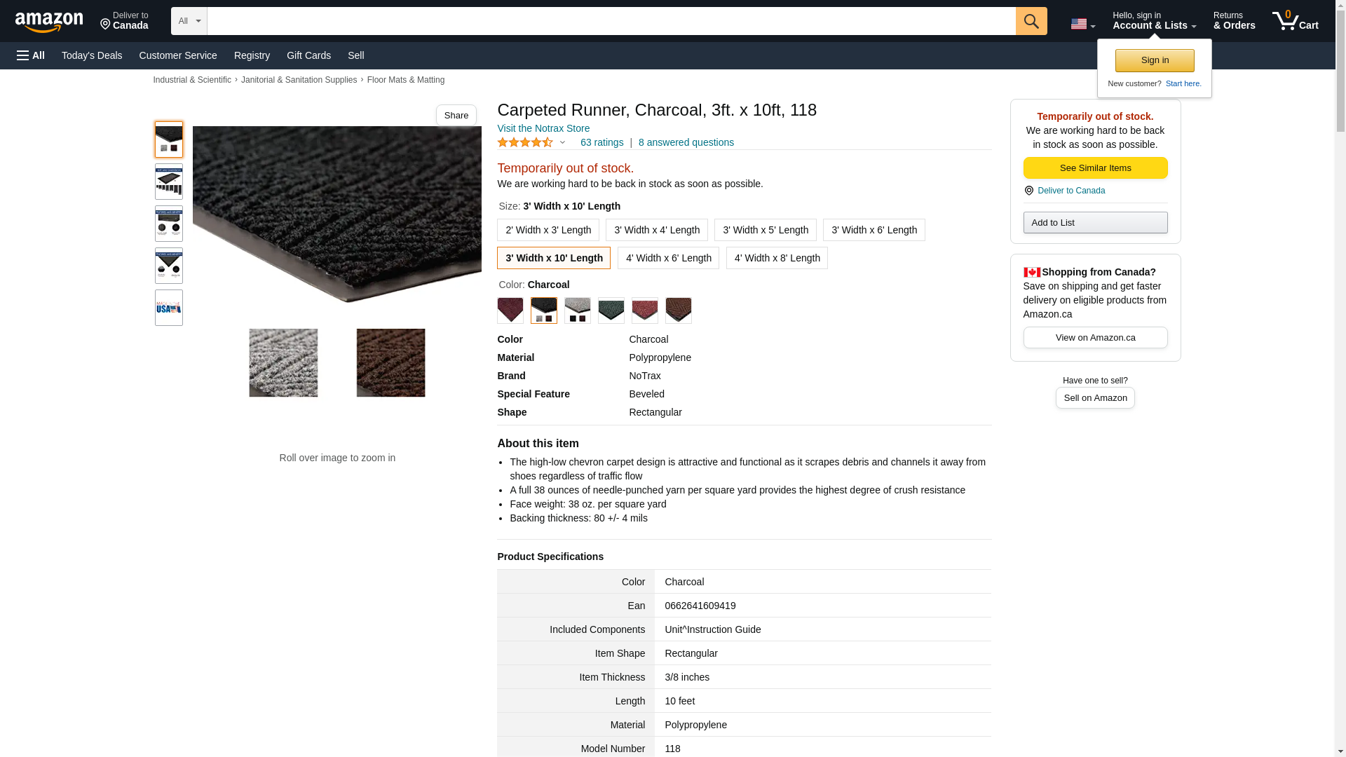 Notrax Carpeted Runner, Charcoal, 3ft. x 10ft., 118