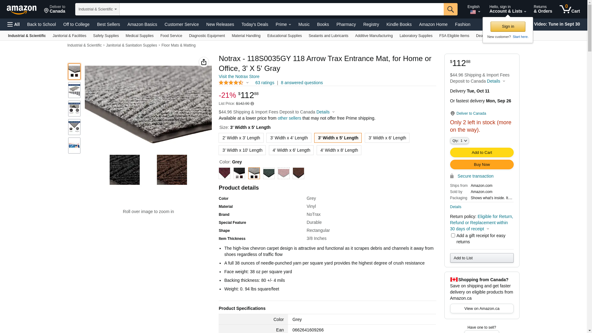 Notrax - 118S0035GY 118 Arrow Trax Entrance Mat, for Home or Office, 3' X 5' Gray